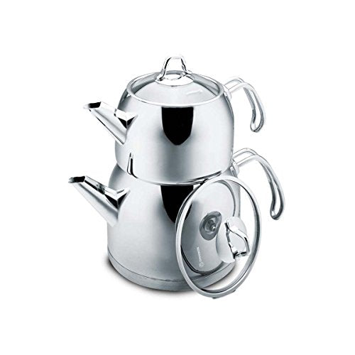 Korkmaz Provita Maxi gekapseltes türkisches Teekannen-Set mit ergonomischem Griff, poliertes Finish, 1,1 und 2 Quart