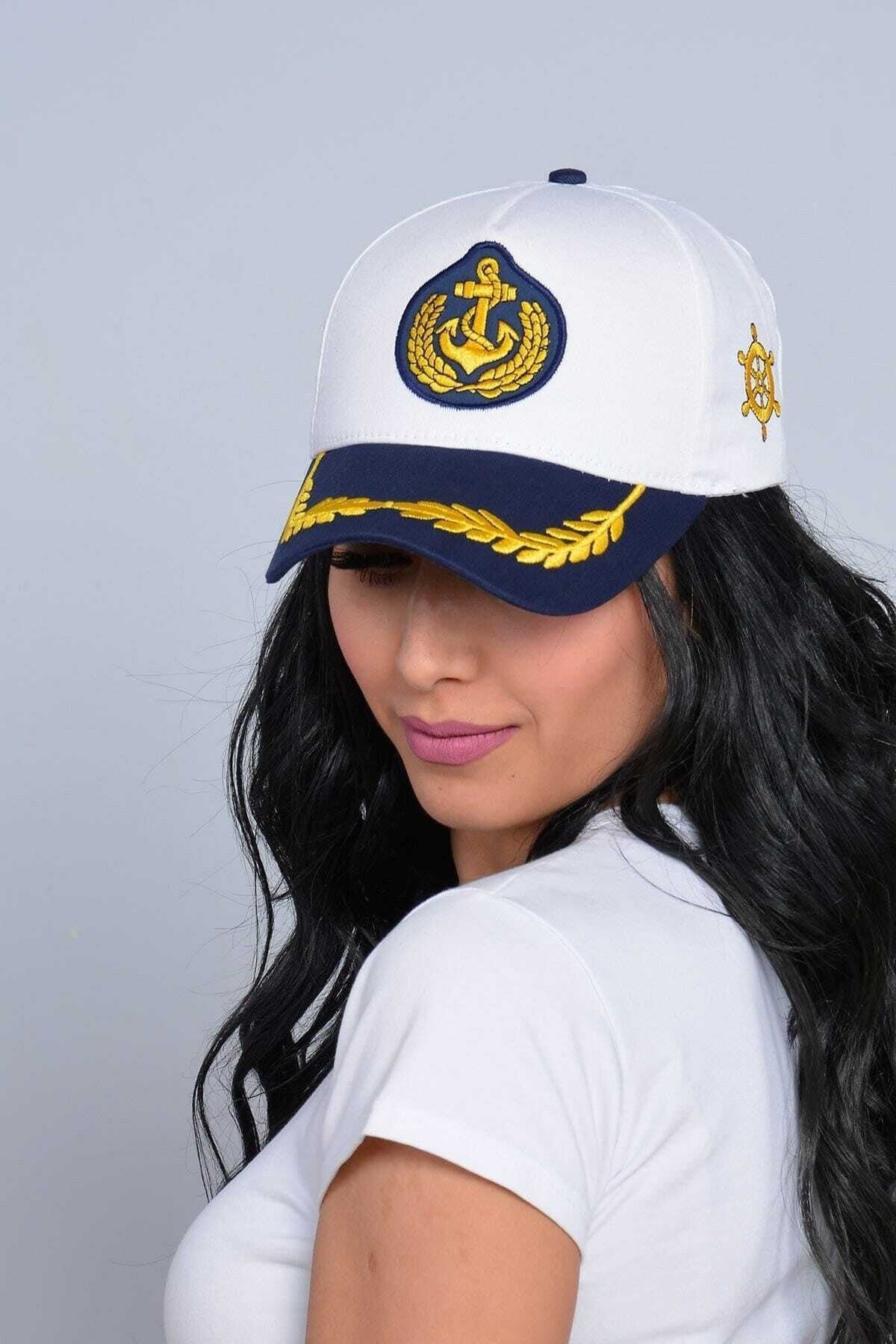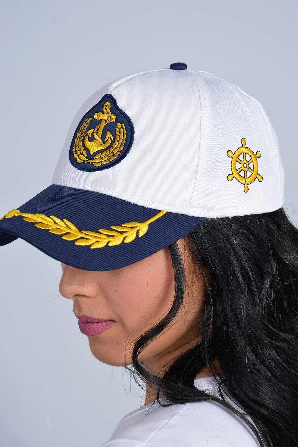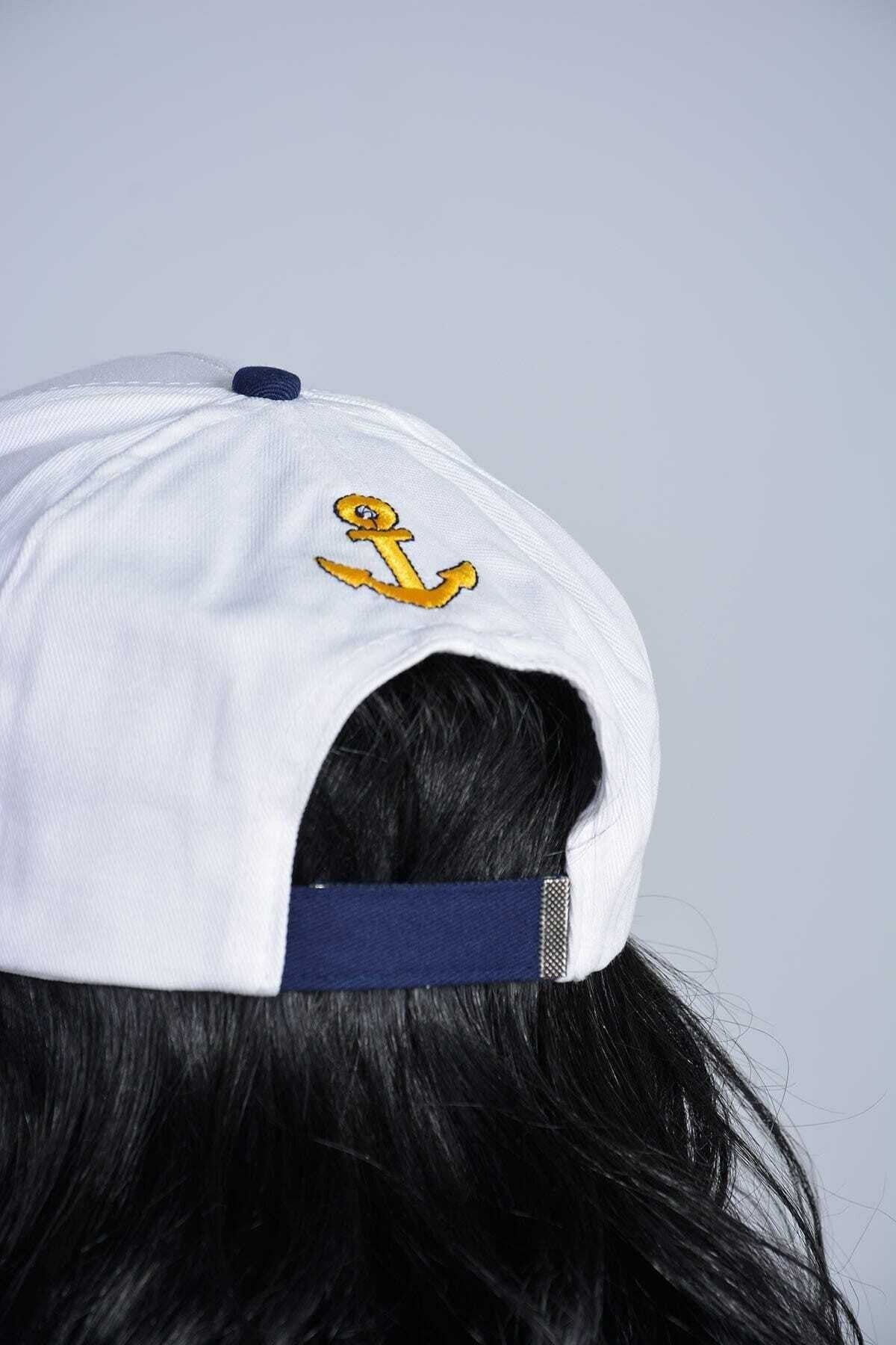 Wykonany z wysokiej jakości bawełny. (Biały - Granatowy) Funkcja regulacji dla łatwego i wygodnego dopasowania do głowy. Sailor Anchor Crest (haftowany produkt)