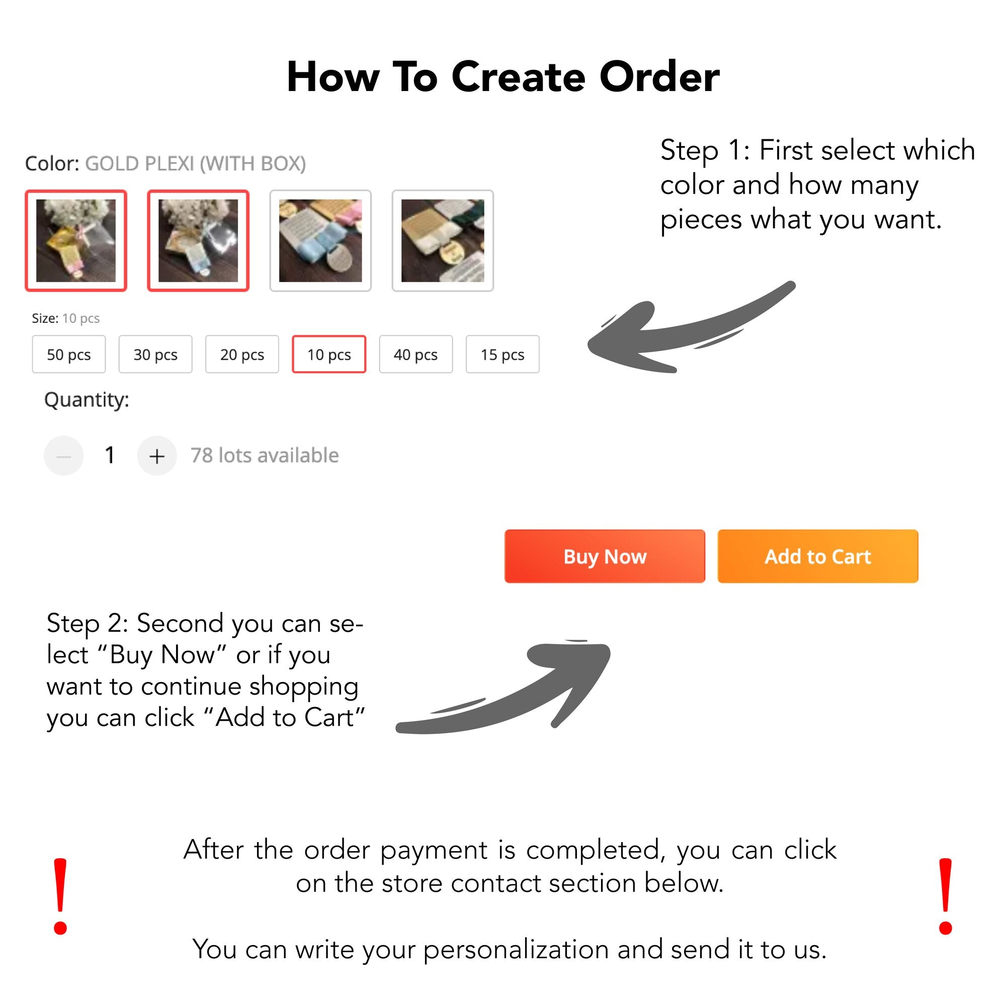 Złóż zamówienie, po prostu wysyłając nam wiadomość z wybranym kolorem wstążki i szczegółami personalizacji. Minimalna ilość zamówienia to 10 sztuk, aby zapewnić, że każdy gość otrzyma symbol Twojej wdzięczności.