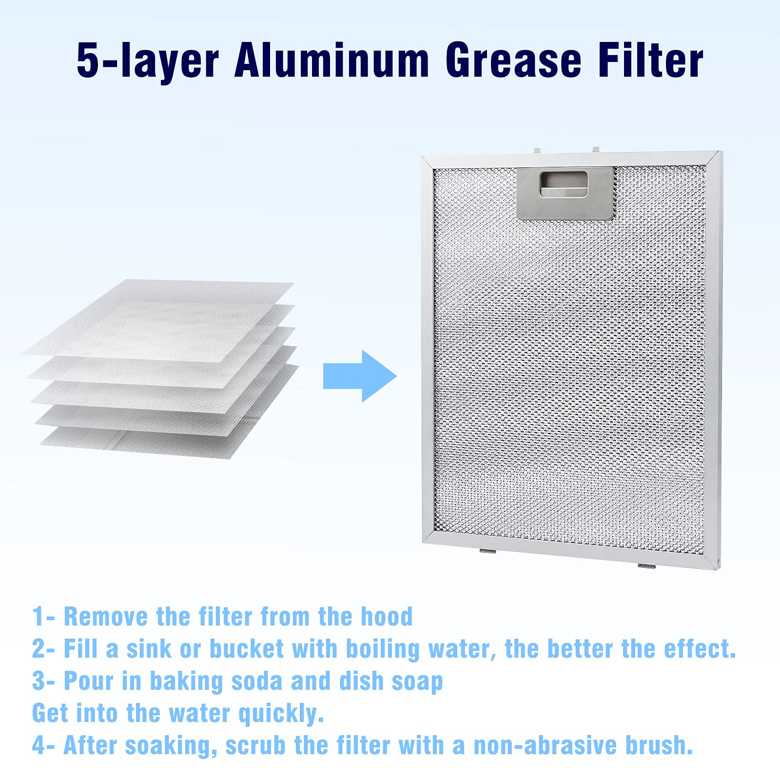 • 【Einfache Reinigung】Die Metallfettfilter aus Aluminium sind Spülmaschinenfest und können somit einfach in der Spülmaschine gereinigt werden.